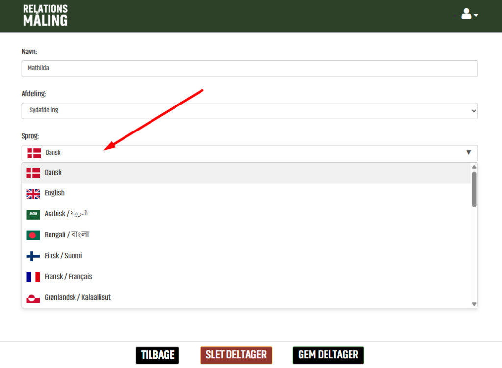 Deltager selv, kan ligeledes ændre sproget på selve målingen