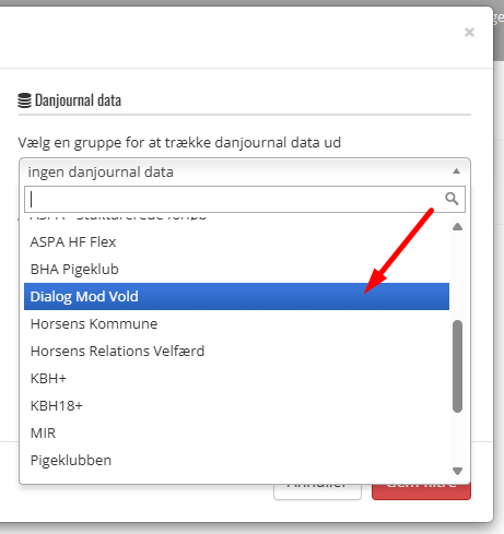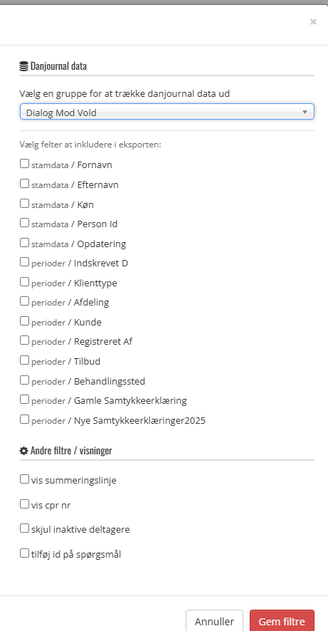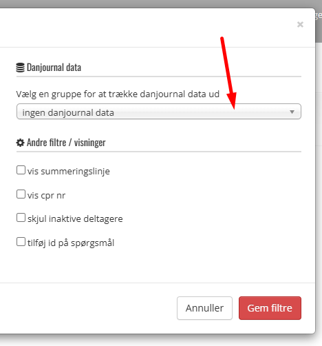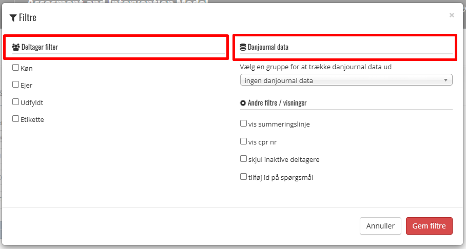 Deltager filter som er AIM data og Dan Journal Data