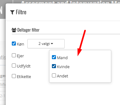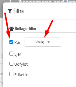 Check boks under Deltager filter har underkategorier som valg