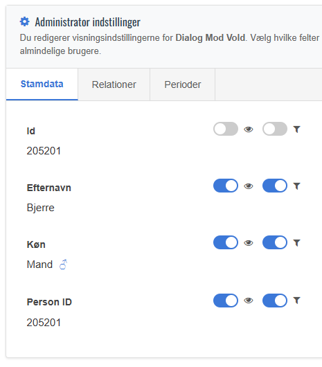 Hver gruppe kan bestemme hvilke filtre der vises på Statistik siden. Altså hvilke filtre der kan bruges for statistik udtræk.