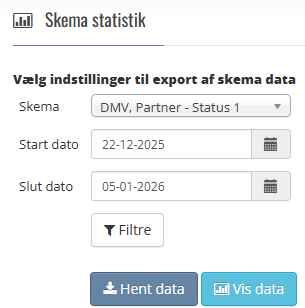 Efter at have valgt et Skema, samt sat en Start og en slut dato, kan der vælges filtre