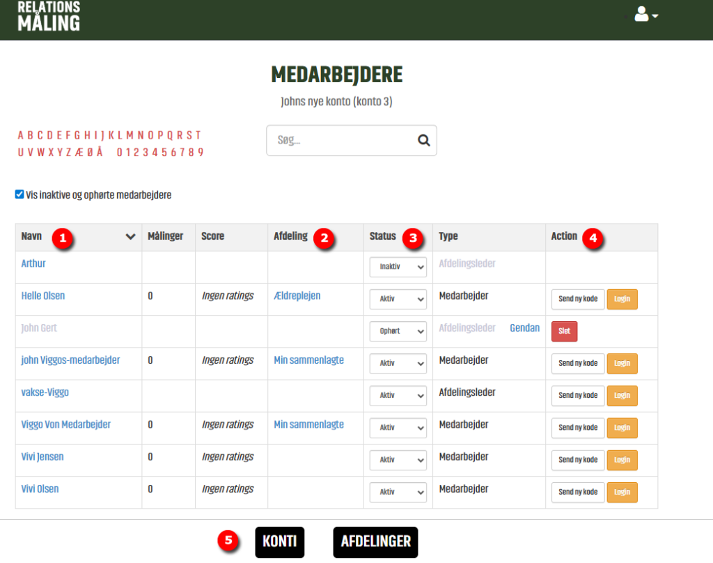 - Klik på tallet, viser listen over Medarbejdere for den pågældende konto